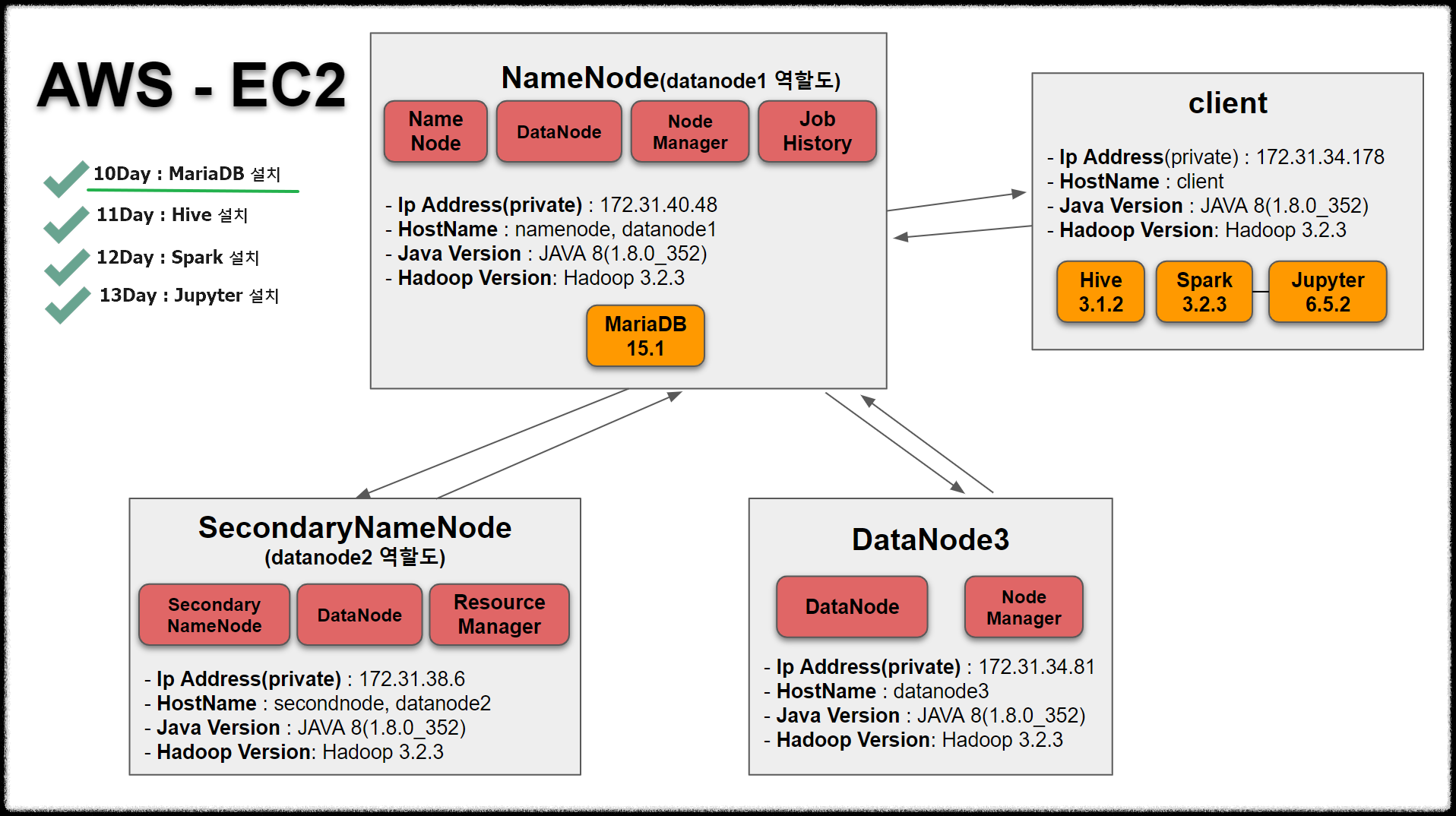 | [AWS-EC2 Hadoop|Hive|Spark] Hadoop Name/DataNode 및 Client 서버 기본 설정+ ssh 키생성 (0) | 2022.12.09 |