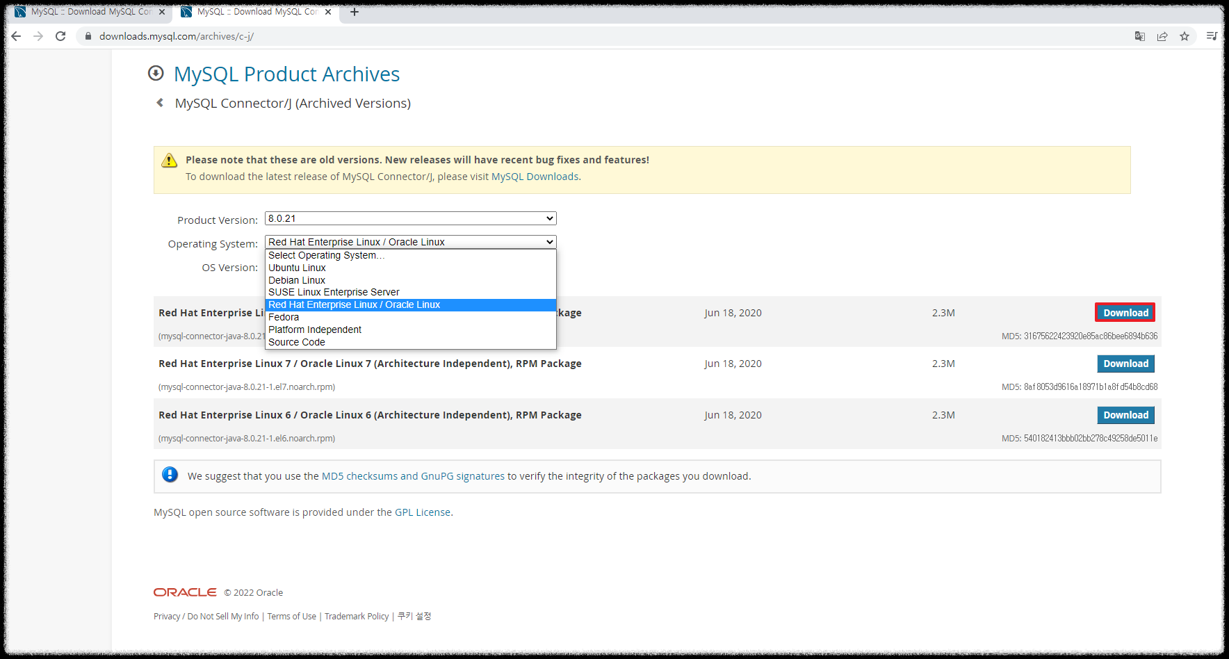 MySQL :: Download MySQL Connector/J (Archived Versions)