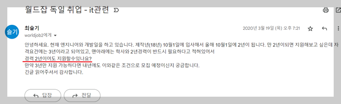 최소 조건에는 유사 경력 2년 이상이었지만 추천 경력으로는 3년이었다.