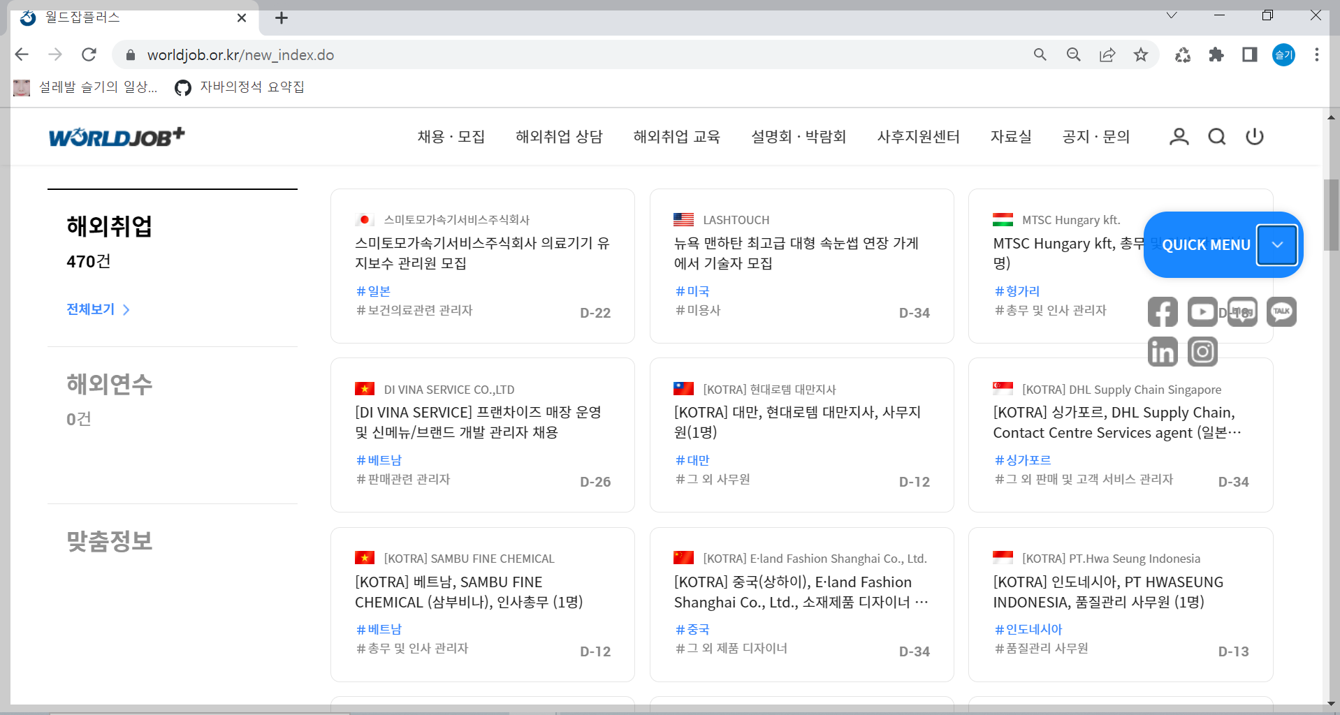 그 외 해외 취업을 하기 위한 외국어 교육, 외국어 이력서 첨삭등도 무료로 지원하니 해외 취업을 하기에 도움되는 사이트이다.