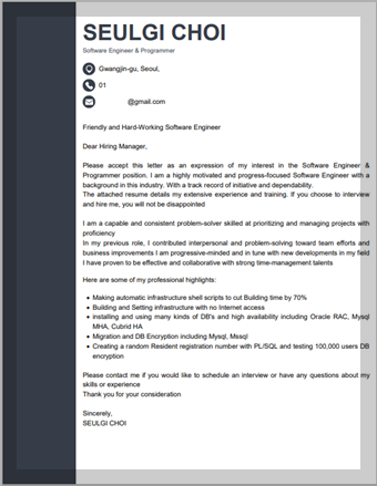 참고 삼아 제가 작성한 Resume와 Cover Letter올려 드릴게요. 자세한 작성방법은 다음 글에 올리도록 하겠습니다.