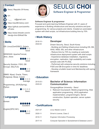 외국 취업일 경우에는 Resume(이력서)와 Cover Letter를 작성해야 한다. (물론 국가별로 다를 수 있음)