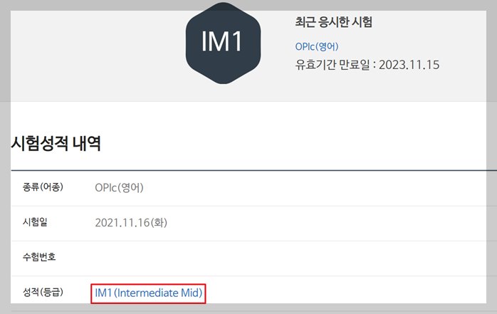 하지만 IM2 바로 아래 단계인 IM1이 나와 영어 상급 구사자 조건 맞추는 것은 실패했다.