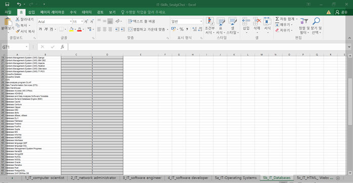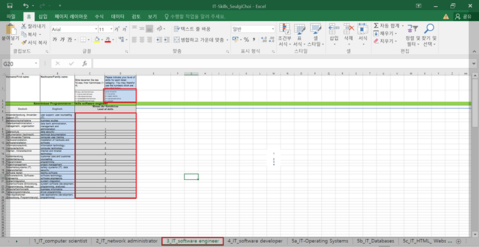 작업시트는 먼저 직업(1_IT~4_IT)칸과 두번째 기술(5a_IT~5g_IT)칸이 있습니다.