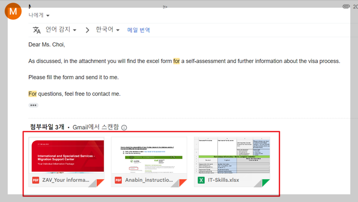월드잡을 통해 서류를 제출하고 합격되면 ZAV(헤드헌터)에서 메일이 옵니다.