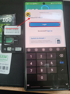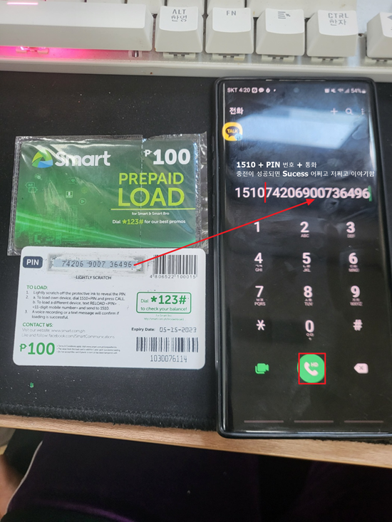 구매한 충전카드의 뒤 PIN 부분을 긁어준다.
