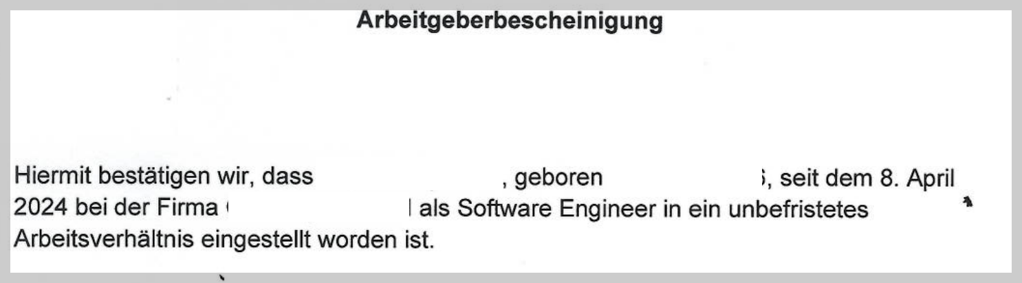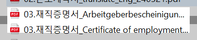 그래서 독일어로 "Arbeitsbescheinigung"을 발급해줄 수 있냐고 요청했고, 별도로 작성해주었습니다.