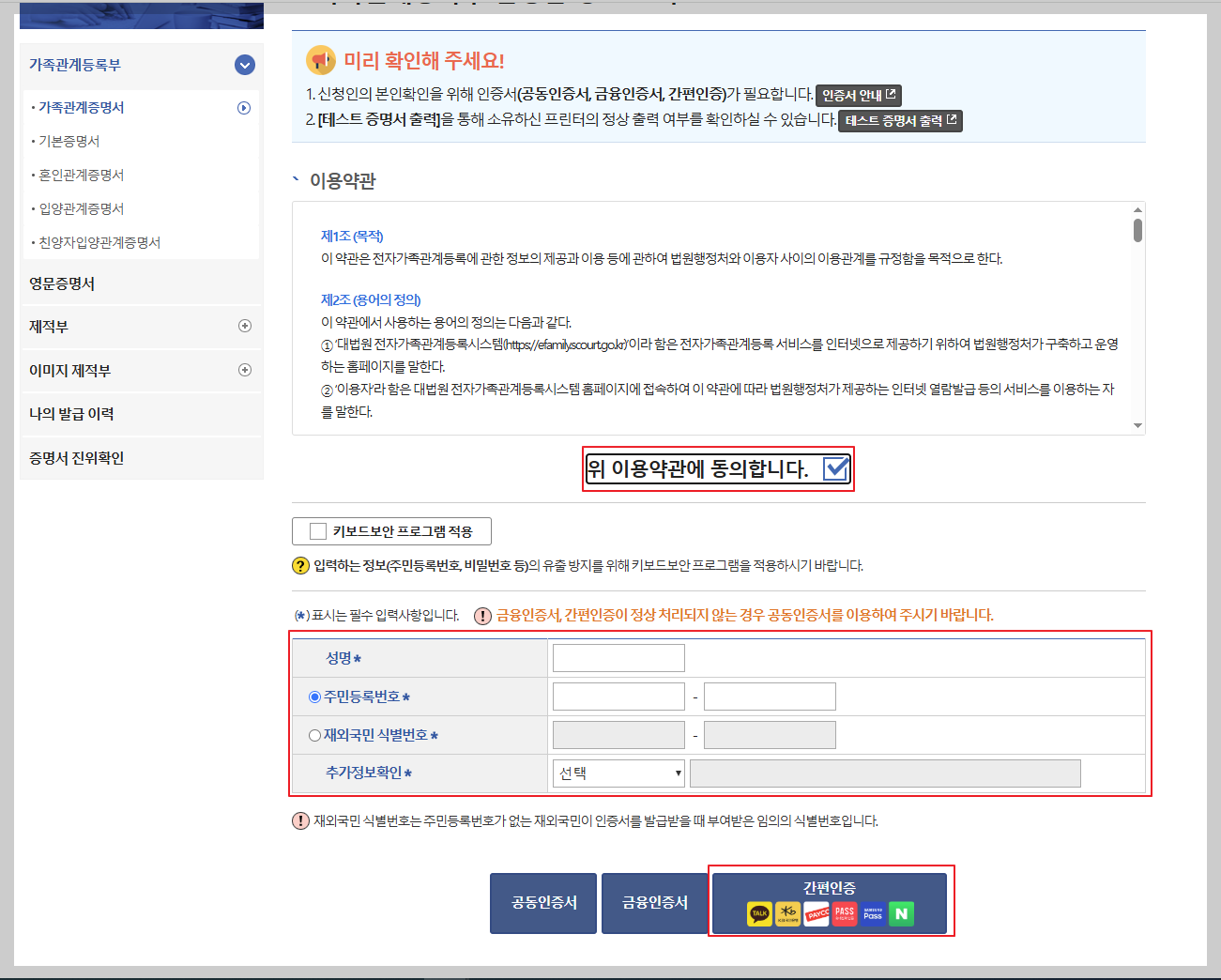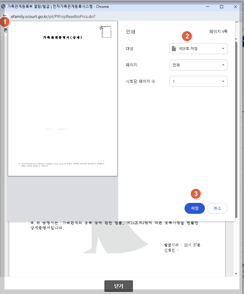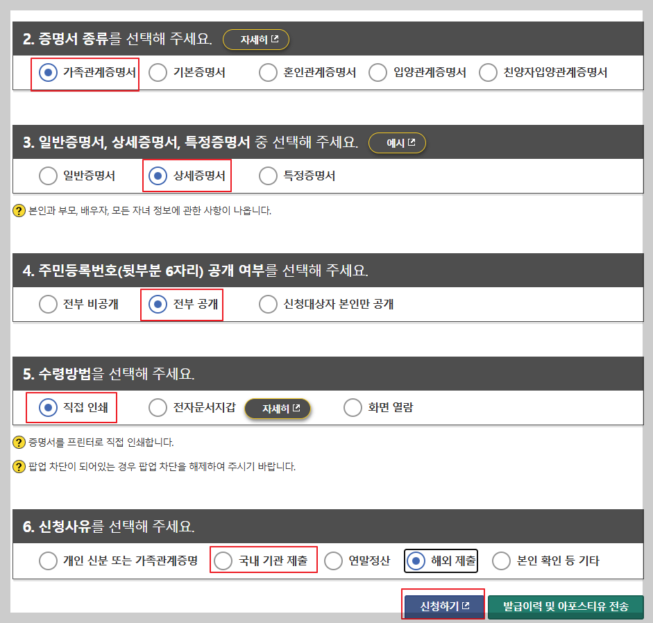 ‘본인 기준’, ‘상세본’, ‘발급용’만 인정됩니다. 현재 해외에 있는 저는 동사무소에 갈 수 없기 때문에 인터넷에서 발급하였습니다