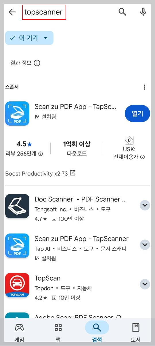 - 앱 종류는 Topscanner 등 자유롭게 사용