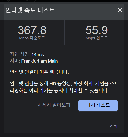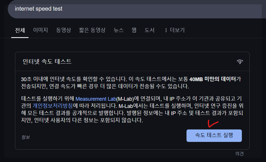 - 구글에 internet speed test를 검색하면, 쉽게 인터넷 스피드 확인이 가능합니다.