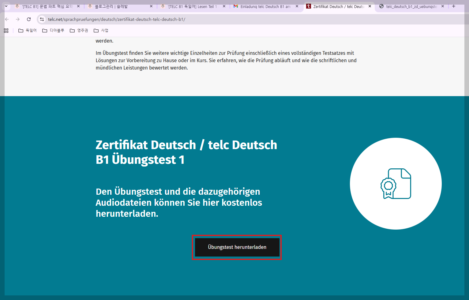 telc 공식 홈페이지의 연습문제와 유형을 비교해보면 바로 확인 가능하다.