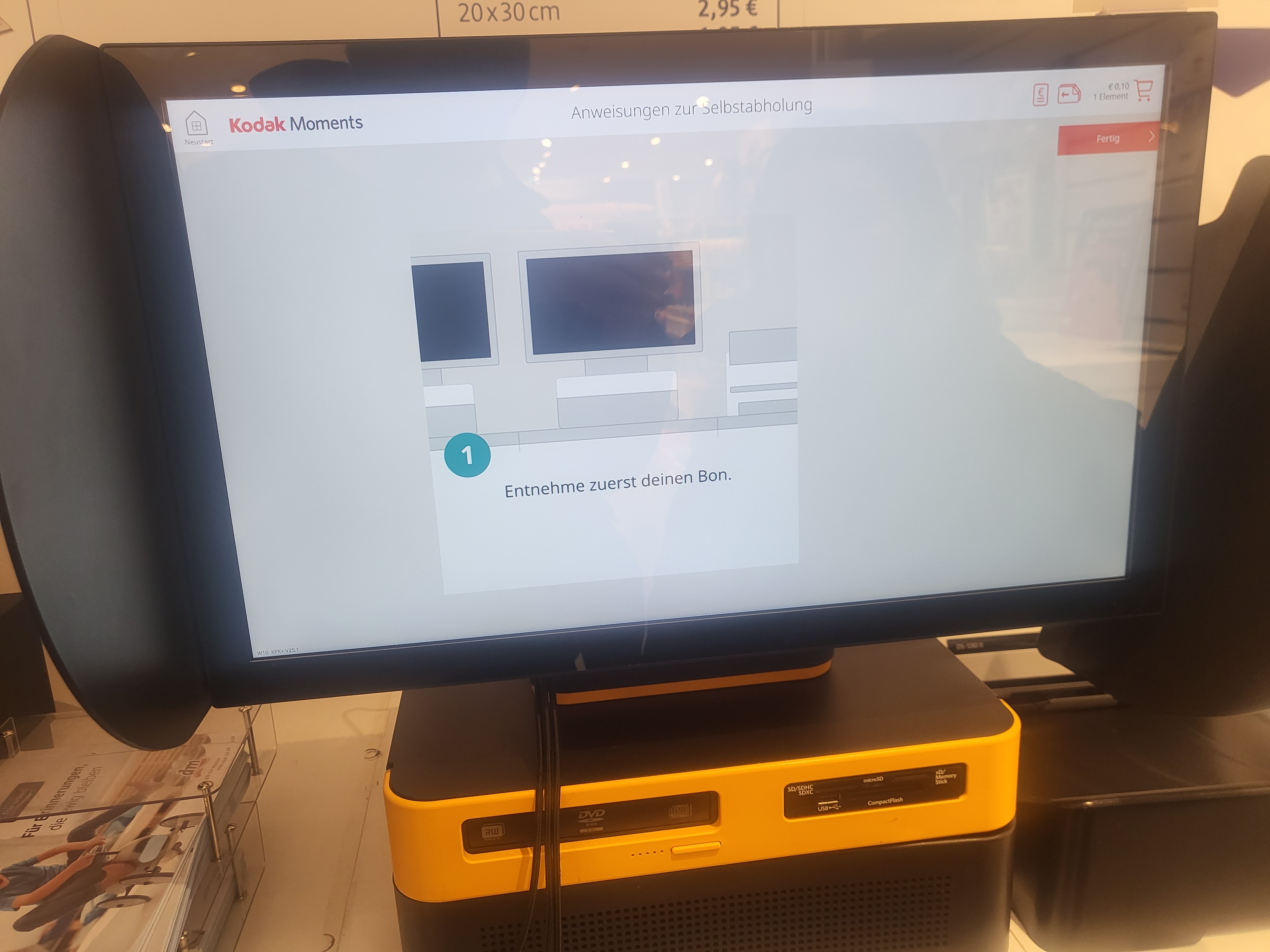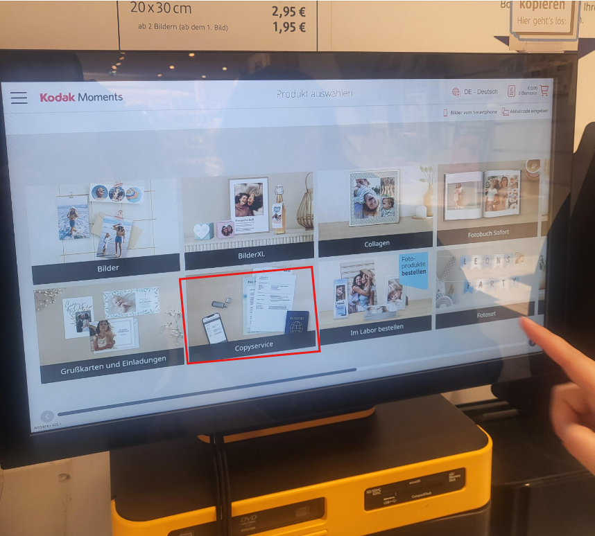 DM 매장에 들어가면 사진 인화용 기계처럼 생긴 터치 모니터와 프린터가 배치되어 있다.