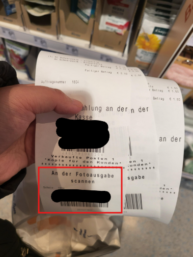 (계산대에서 편리하게 결제해 주세요) - An der Fotoausgabe scannen
