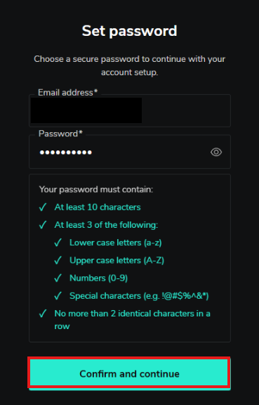 Set password 버튼이 활성화된다.