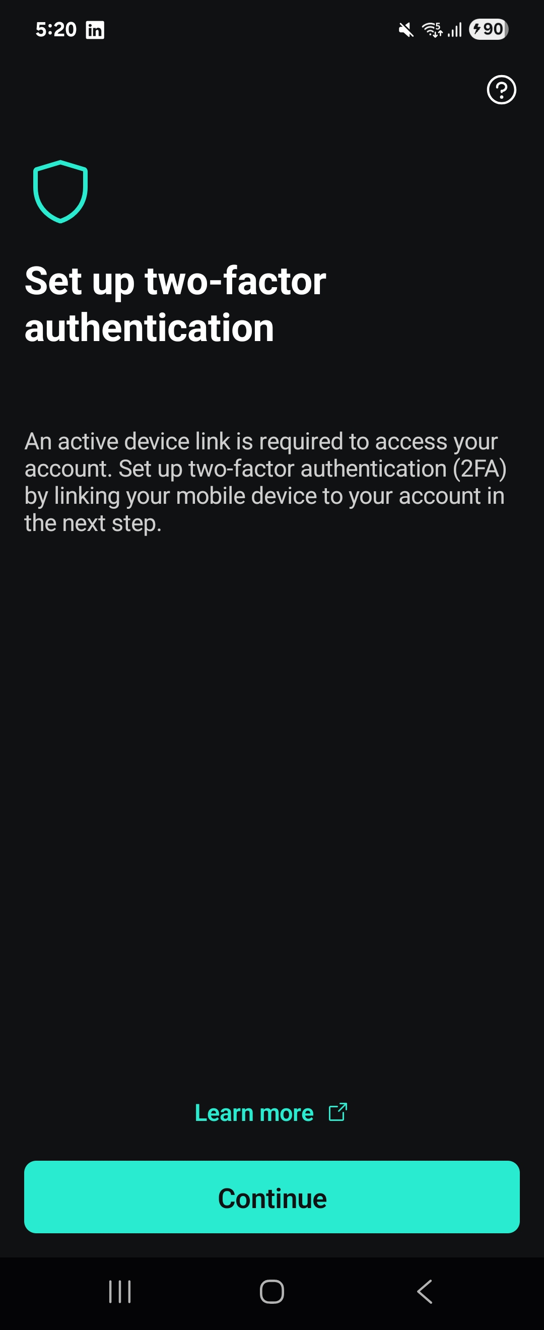 비밀번호 설정이 끝나면, 모바일 앱에서 계속 진행하라는 안내가 나온다.