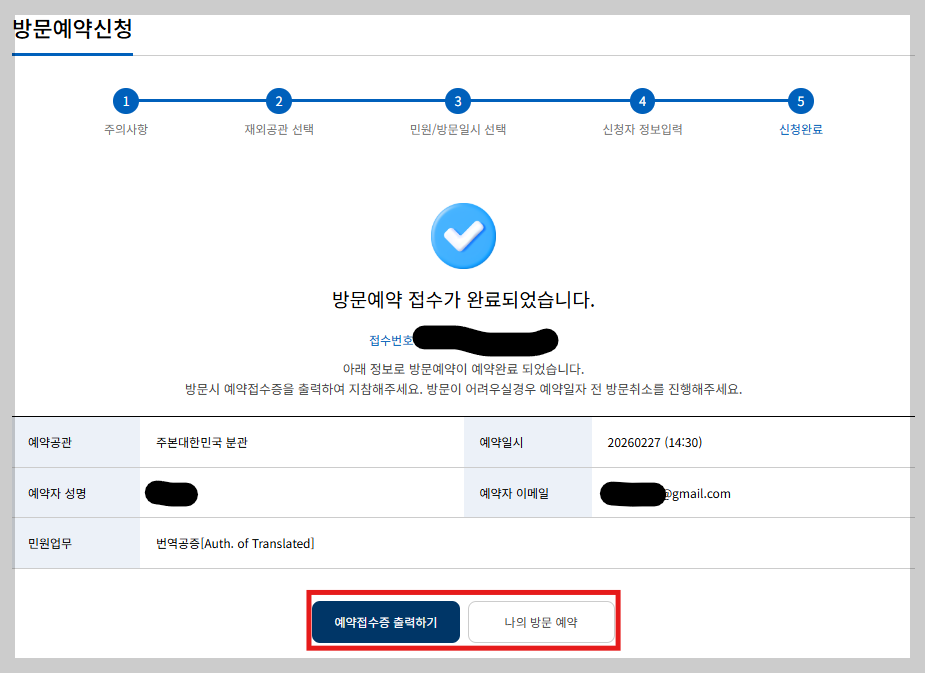 - 예약접수증 출력
