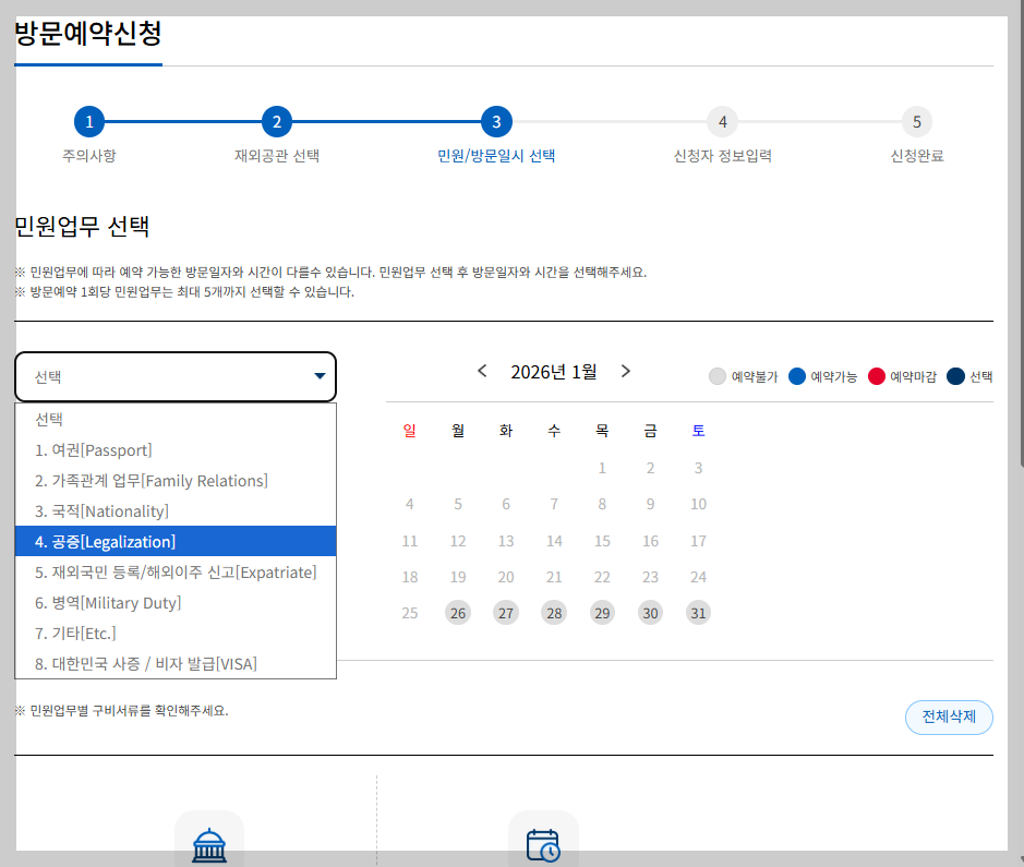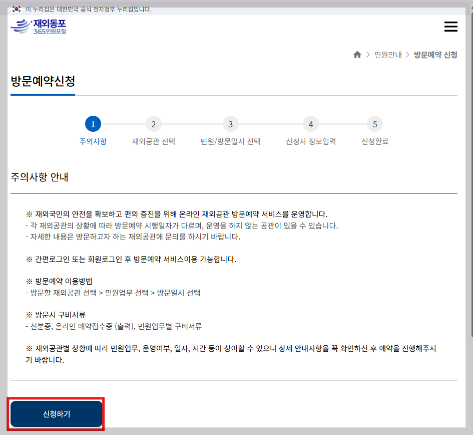 (대사관 기준 · 365민원포털 테아민 예약)