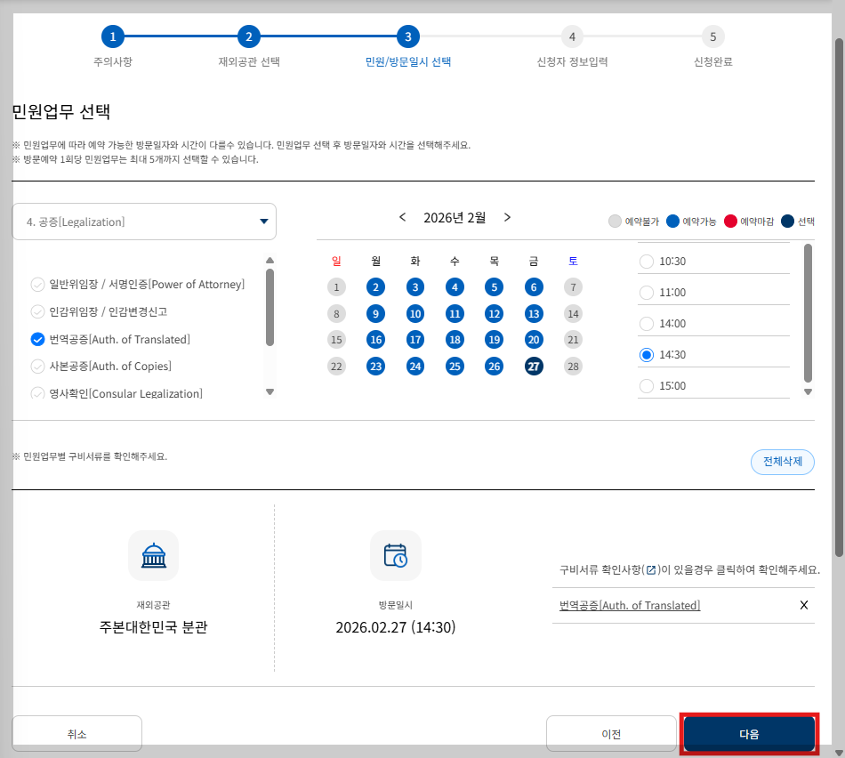 대사관 번역공증 테아민 예약 방법 (365민원포털)