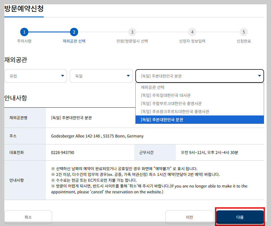 - 재외공관: 가까운 대사관 선택