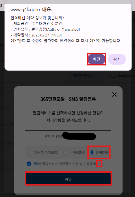 Q. 번역공증 예약 확인 메일이 안 오면 어떻게 하나요?