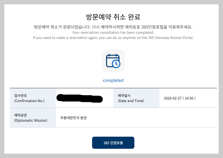 - 방문예약 취소 완료 화면 확인