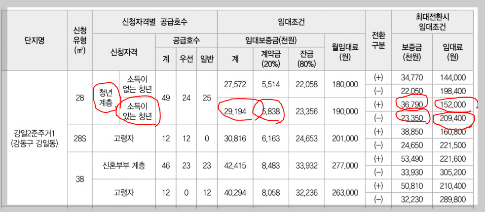 공고를 확인해보니, 대부분은 신혼부부 전용이었고 청년 계층이 지원 가능한 단지는 소수였어요.