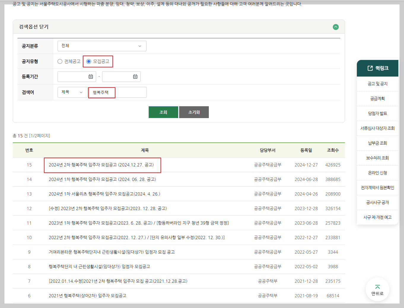 예를 들어 ‘2025년 2차 행복주택 입주자 모집 공고’ 이런 식이죠.