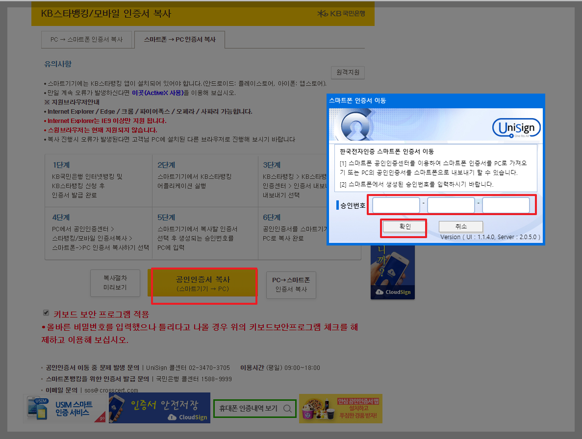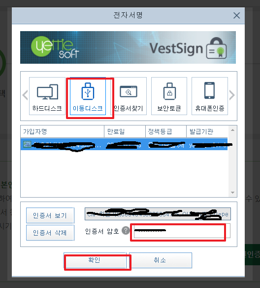 저는 스마트폰에 있는 인증서를 PC USB로 옮겨서 사용하는 방식으로 진행했어요.