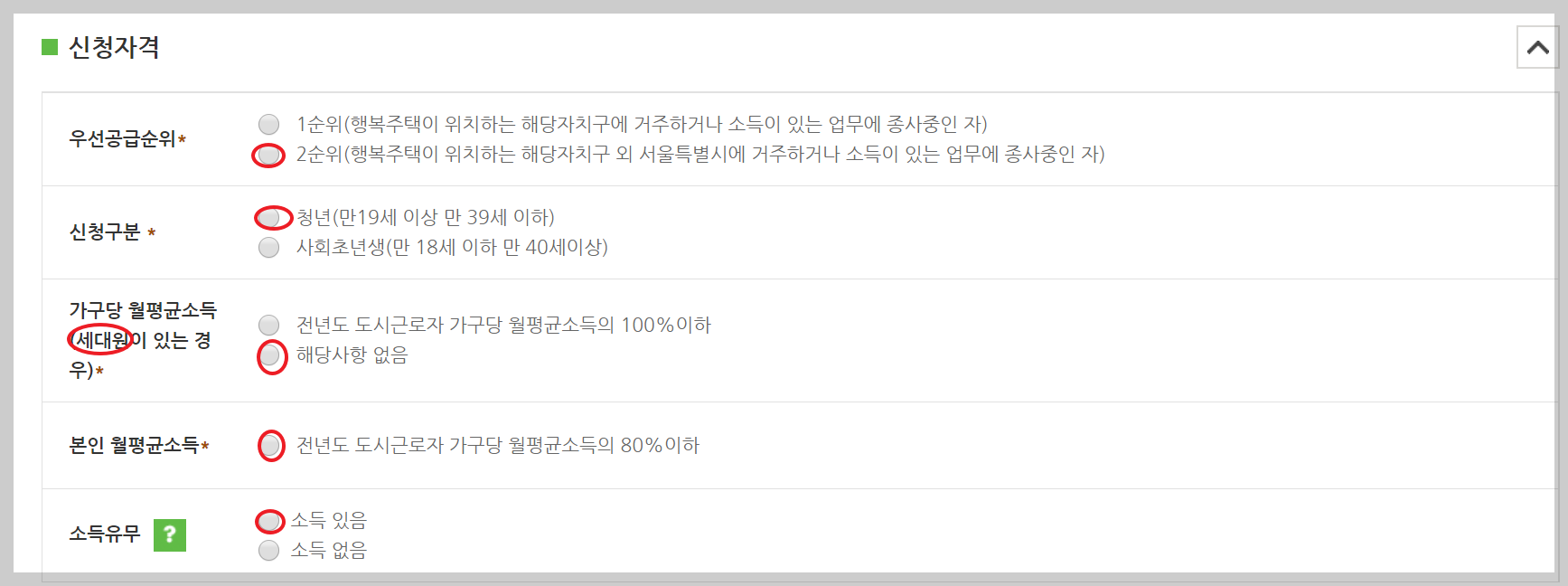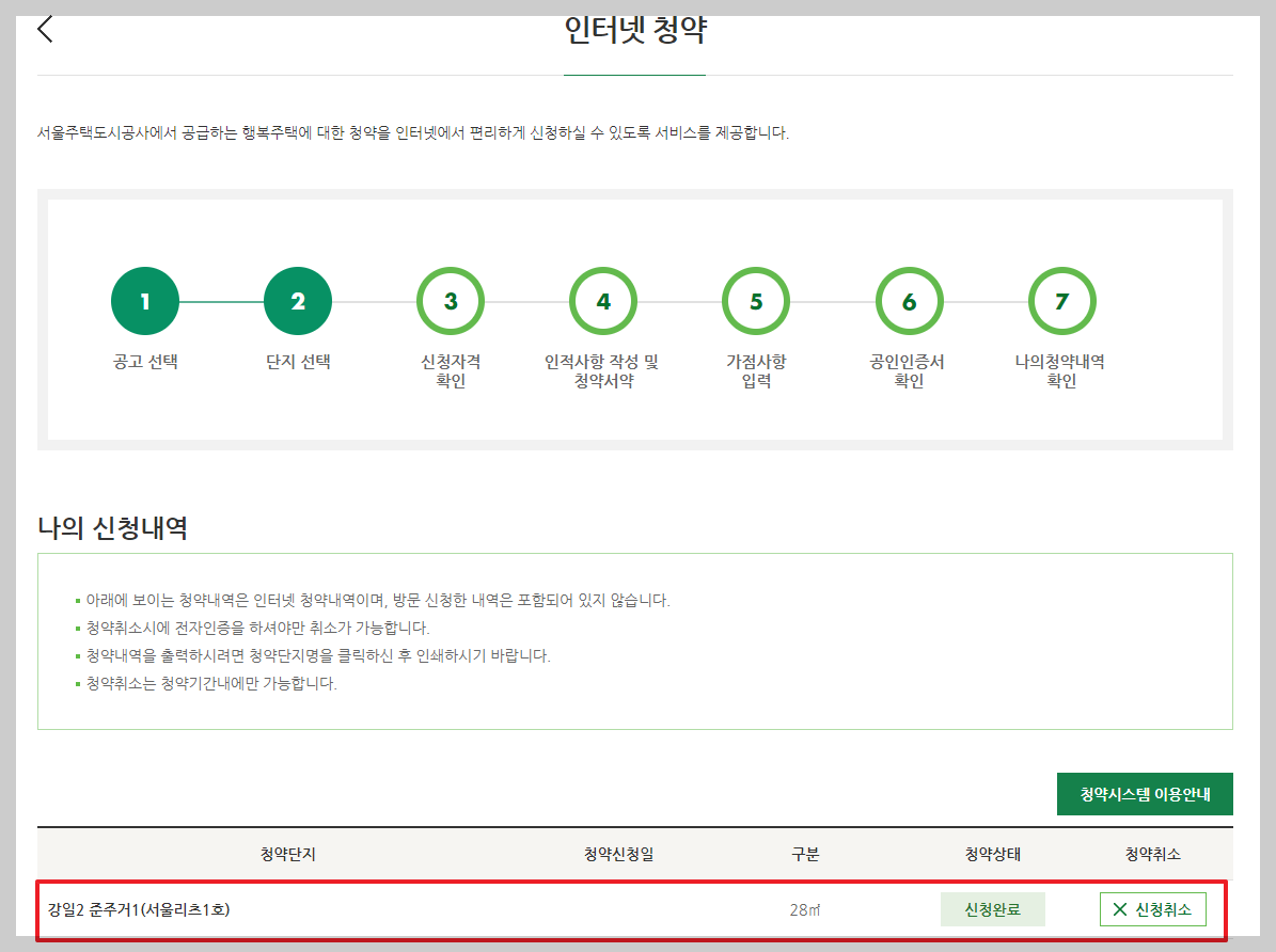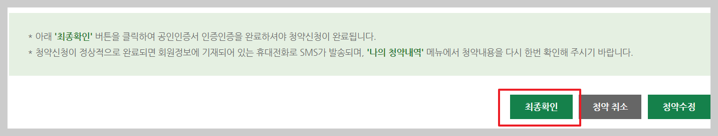 자신이 지원하려는 공급대상지원이 맞는지 확인하고 청약하기를 선택해주세요.