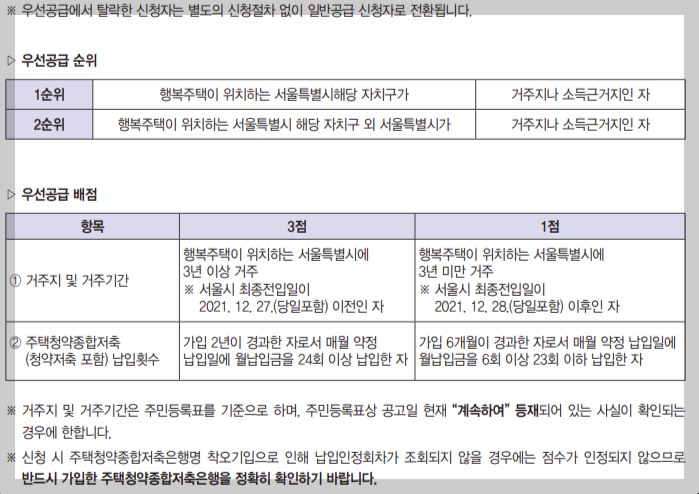 우선공급: 거주지 또는 직장이 해당 지역일 때 일반공급: 조건 충족 안될 경우 추첨 |