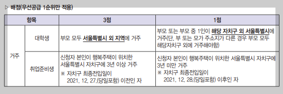 우선공급: 대학이 위치한 지역 거주 시 일반공급: 우선 조건이 없을 경우 |