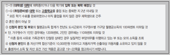 | 대학생 | - 해당 지역 거주자 또는 해당 지역 대학 재학생 - 다음 학기 입학 예정자 또는 복학생도 포함 |