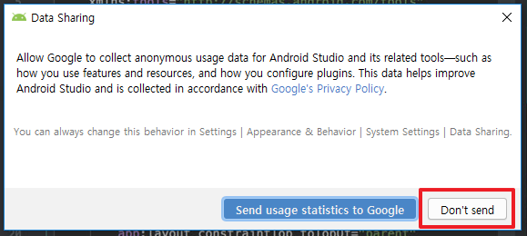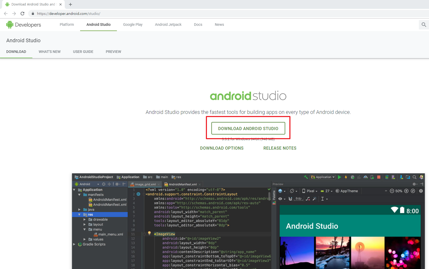 DOWNLOAD ANDROID STUDIO를 누릅니다.