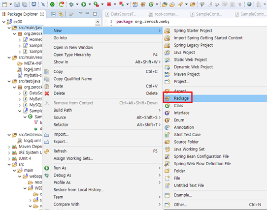 테스트의 경로는 src/test/java 밑에 samplecontrollertest로 작성합니다.