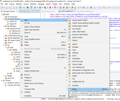 DataSource의 연결은 mybatis의 설정과는 관계있으므로 먼저 설정하고 테스트해야 합니다. 데이터 소스가 정상적으로 설정된 이후의 작업은 mybatis와 mysql을 연동시키는 작업입니다.