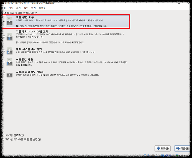 오라클 리눅스 설치 완료, 스냅샷 하기