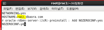 /etc/sysconfig/network 파일의 내용을 수정합니다. (rac1->rac2)