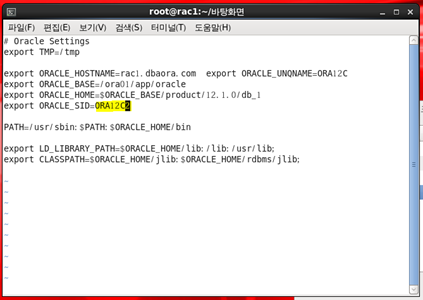 /home/oracle/.bash_profile_database 파일을 수정합니다. (ORA12C1->ORA12C2)