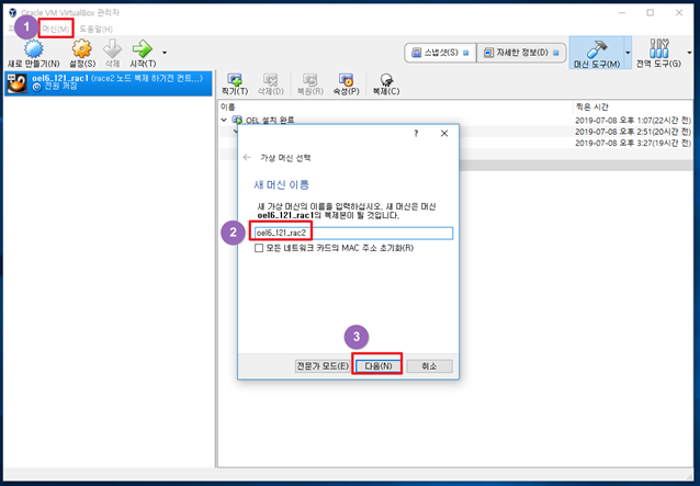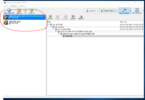 Oel6_121_rac2가 가상머신이 생성된 것을 확인할 수 있습니다. 이제부터 2개의 가상머신에 Shared.vdi를 각각 attach 하도록 합니다.