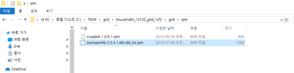 oracleasmlib-2.0.4-1.el6.x86_64.rpm을 다운로드 한 후에 공유 폴더 (c:\Temp\oracle_sw\grid\rpm)에 저장한 후 설치합니다.