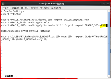 /home/oracle/.bash_profile_grid 파일을 수정합니다. (+ASM1->+ASM2)